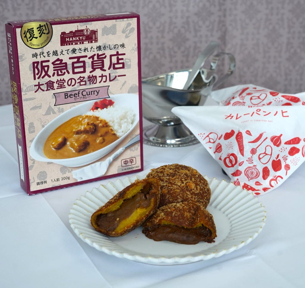 「つの田の牛めし」の「大人向けお子様ランチプレート」(1人前/1,296円)              プリン以外の商品も充実。「阪急うめだ本店」地下1階の惣菜売場では“復刻&懐かしい味”として、「阪急百貨店大食堂」の名物カレーの味わいをイメージした、昭和100年の食べ納め企画に合わせて開発されたミニカレーパンがお目見え!