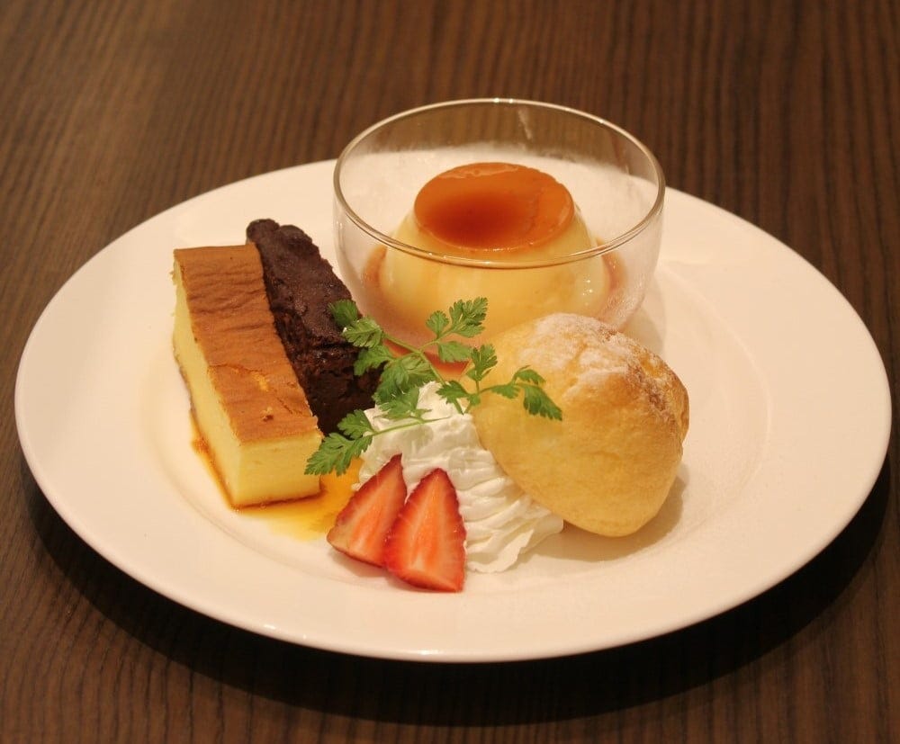 「はり重グリル」の「プリン・ア・ラ・モード」(1人前/1,870円)     「カフェ モロゾフ」の「クレープのプリンアラモードとお飲物」(1人前/1,540円)