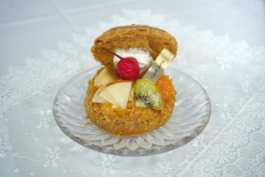 「クラブハリエ」の「パイバーガー プリンアラモード」(1個/777円)     「カサネオ」の「プリンアラモード ミルクレープ」(1個/702円)