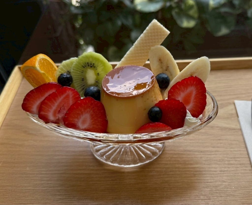 「喫茶室コホロ」からはフルーツたっぷりの定番スタイル、「クラビ バイ チェディルアン」からはココナツプリンを使ったものが提供されます。どれもお買い物のあとにゆったり食べられるのがうれしいポイントです。