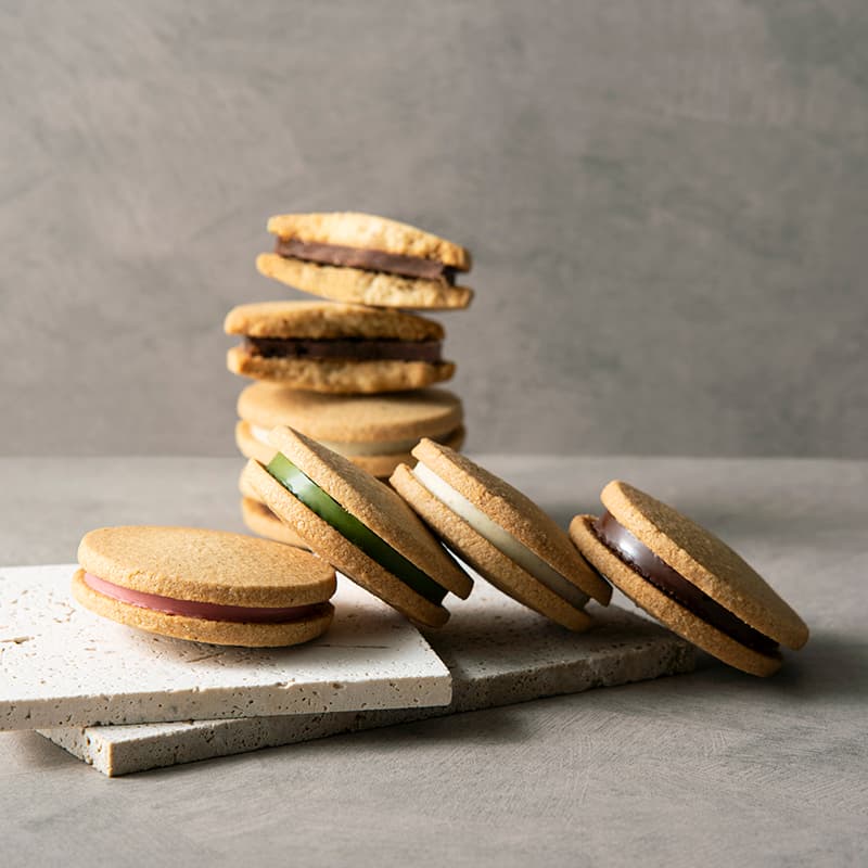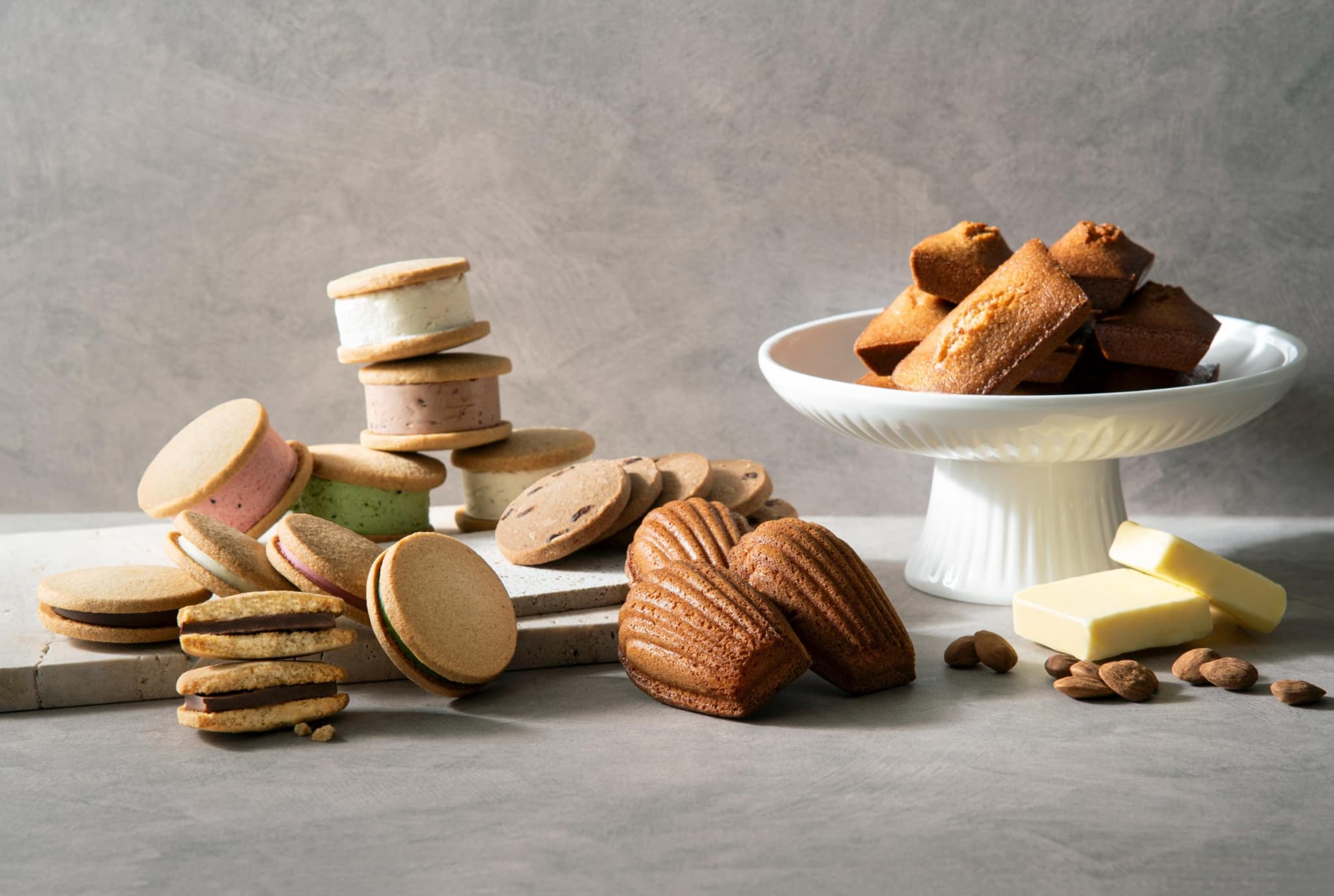 「プレミアムバターサンドクッキー」(400円~) ※冷凍での販売 他にも、フランス産発酵バターの豊かな滋味が自慢のサブレや、レモン山椒、梅いちご、抹茶ゆず、甘夏ダークの4種類を展開する「ショコラサンド」、ふわりと口どけ軽やかな特製バタークリームをサンドした「プレミアムバターサンドクッキー」などの販売が予定されています。