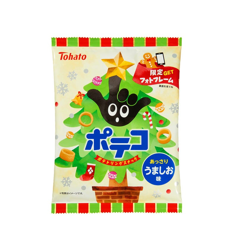 カリッと食感がやみつきになる、満足感たっぷりなポテトリングスナック「ポテコ」も、クリスマスにぴったりな限定パッケージになって登場。「ポテコ・うましお味(クリスマス)」は、沖縄県製造の“美ら海育ちの塩”を使用することで、じゃがいもの味わいを引き立てた、あっさりとした味わいのうましお味。クリスマス仕様のパッケージも可愛い。