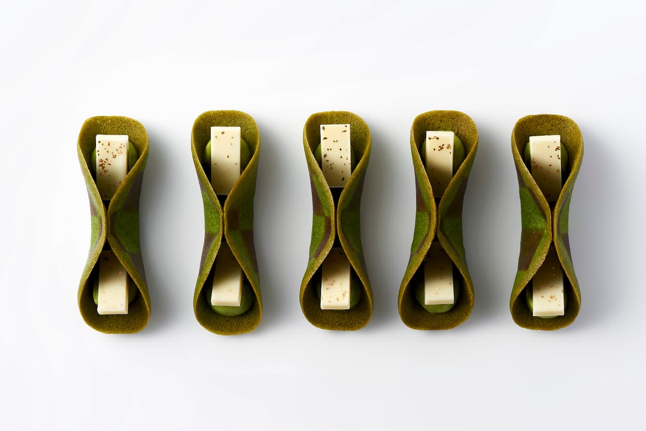 「IKKYU」(5個入/837円、8個入/1,167円、12個入/1,750円、15個入/2,187円) ブランド名がついた「IKKYU」は、格子模様のラングドシャに抹茶クリームとホワイトチョコを飾った焼き菓子。抹茶の香りが最大限に引き立つ温度150度でゆっくりと焼き上げており、渋みを抑えた柔らかな甘みと豊かなうま味を持つ京都宇治抹茶を堪能できます。
