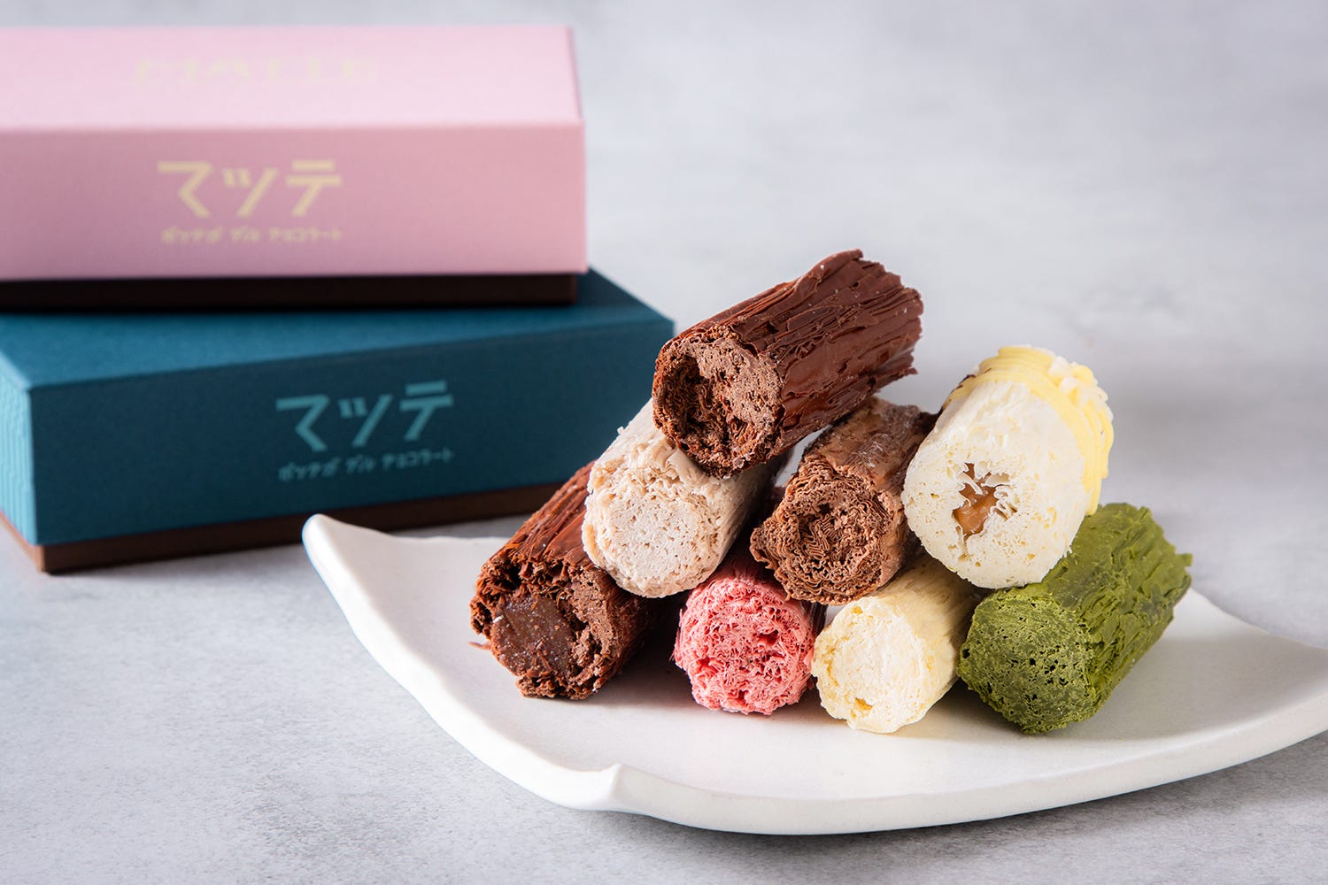 特注の専用機械で丁寧に作られた「コルテッチーナ」は、わずか0.03mmという極薄のチョコレートを幾重にも重ねて生まれた繊細な逸品。ひと口食べると、サクサクとした軽やかな食感とともにチョコレートがすっと溶け、カカオの香りと深い甘みが口いっぱいに広がる贅沢な味わいが楽しめる一品に。