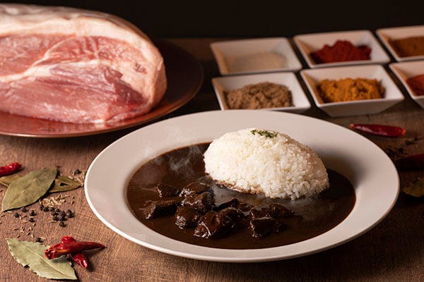 歯切れよくやわらかな肉質と、脂身の上品な甘みが魅力の「鹿児島黒豚」を贅沢に使ったカシミールカレー。豊かなスパイスの香りを感じつつも、舌ざわりはなめらかで心地よい辛さに仕上げられている。黒豚の凝縮した旨みとスパイスの奥深さが見事に重なり合い、上質で満足感のある味わいを堪能できる。大切な人への手土産や、おうちでの団らんのひとときに。いつもの食卓を、ぐっと贅沢に彩ってくれるはず。