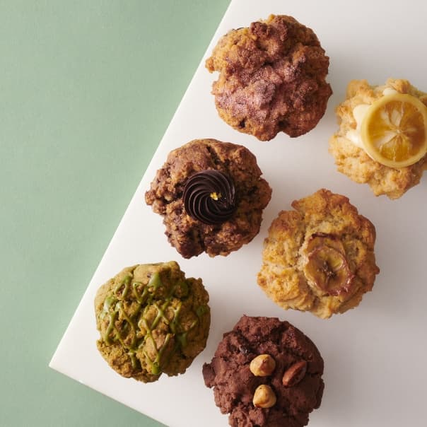 カフェエイト時代から長く愛される看板スイーツ「ヴィーガンマフィン」。季節のフルーツやスパイスを巧みに取り入れ、これまでに生み出されたフレーバーは100種類以上。試行錯誤を重ねて磨き上げたレシピは、2014年より米粉を主役にしたグルテンフリー仕様へと進化。大豆粉やソルガムきびなどの雑穀粉を組み合わせることで、しっとりとした食感と満足感のある食べ応えを両立しながらも、軽やかな口あたりを実現。寒い季節のおともに、心も満たされる一品をぜひ味わってみては。