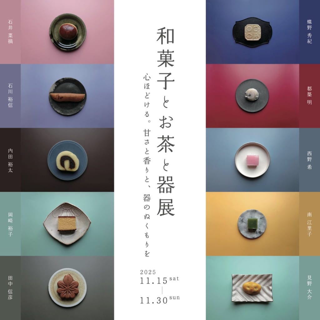 「和菓子とお茶と器展」 11月30日(日)までは同ギャラリーにて、全国の和菓子に合う器作家の作品とお茶の名店が集まる「和菓子とお茶と器展」も開催中。「煎茶堂東京」「ISSO」「GOOD TIMING TEA」といった注目ブランドのお茶がそろい、和菓子・お茶・器が織りなす“和の世界”を五感で体験できる特別企画展です。
