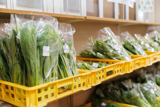葉野菜コーナーにも菊菜や水菜といったお鍋のおともが充実。それぞれの野菜におすすめの食べ方を記載したポップがあるのもうれしい!
