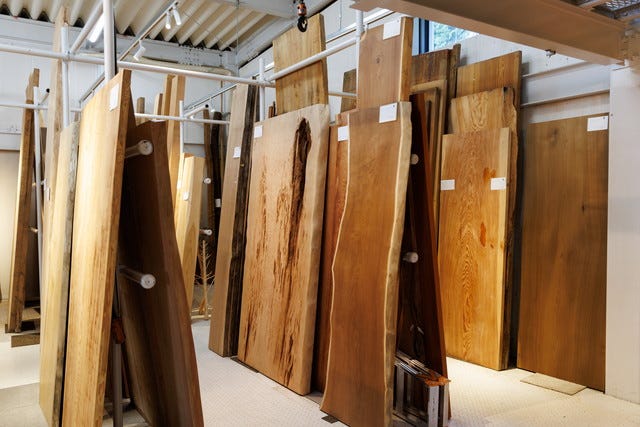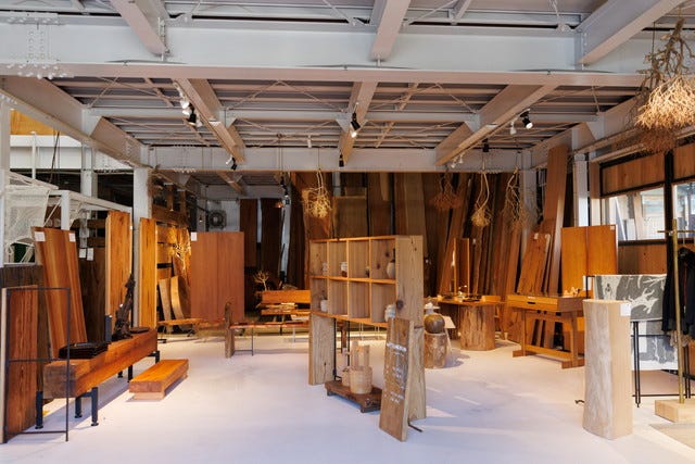 さらに1階奥にあるのが倉庫スペース。「家具・無垢天板 MiTSUKeRUN(ミツケルン)」では、おうちに飾りたいさまざまな家具が並びます。定期的にレイアウトが変わるため、訪れるたびに新たな刺激をくれそうです。