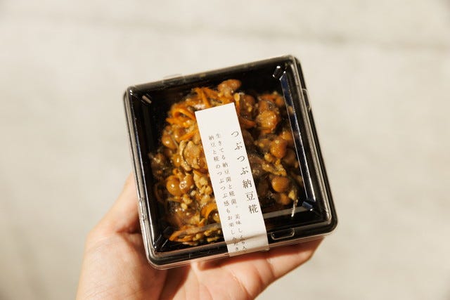「孚」でも提供されている「つぶつぶ納豆糀」(150g/520円)。豊能町の納豆店から仕入れた納豆を使ったオリジナルのごはんのおともです。 1階から2階までぐるりと回遊すれば、お気に入りのアイテムがきっと見つかるはず。心躍るようなわくわくする気持ちが、こころをぽかぽかにしてくれました。