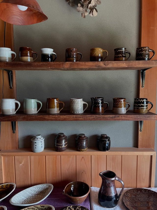 扱っているのは、茶碗に湯呑み、マグカップ、急須、小皿、大皿、酒器、壺など、日常に彩りをプラスしてくれる器たち。関西はもちろん、秋田や沖縄など全国各地からあたたかみのある民藝作品を集め、約300点もの商品が並びます。