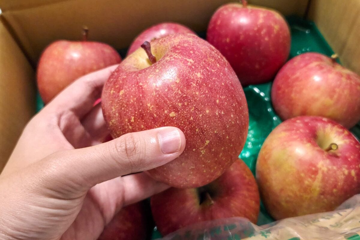 野菜、果物コーナーで購入したのは「りんごサンふじ簡易箱」(税込1,598円)。