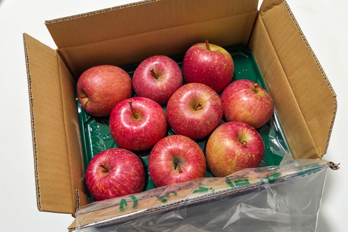 国内生産量ナンバーワンで、甘味と酸味のバランスがとれた「サンふじ」が9個入ったセットです。1個あたり177円とお買い得で、保存袋も付属。食べきれない場合はジャムにもできるため、まとめ買いして正解でした。