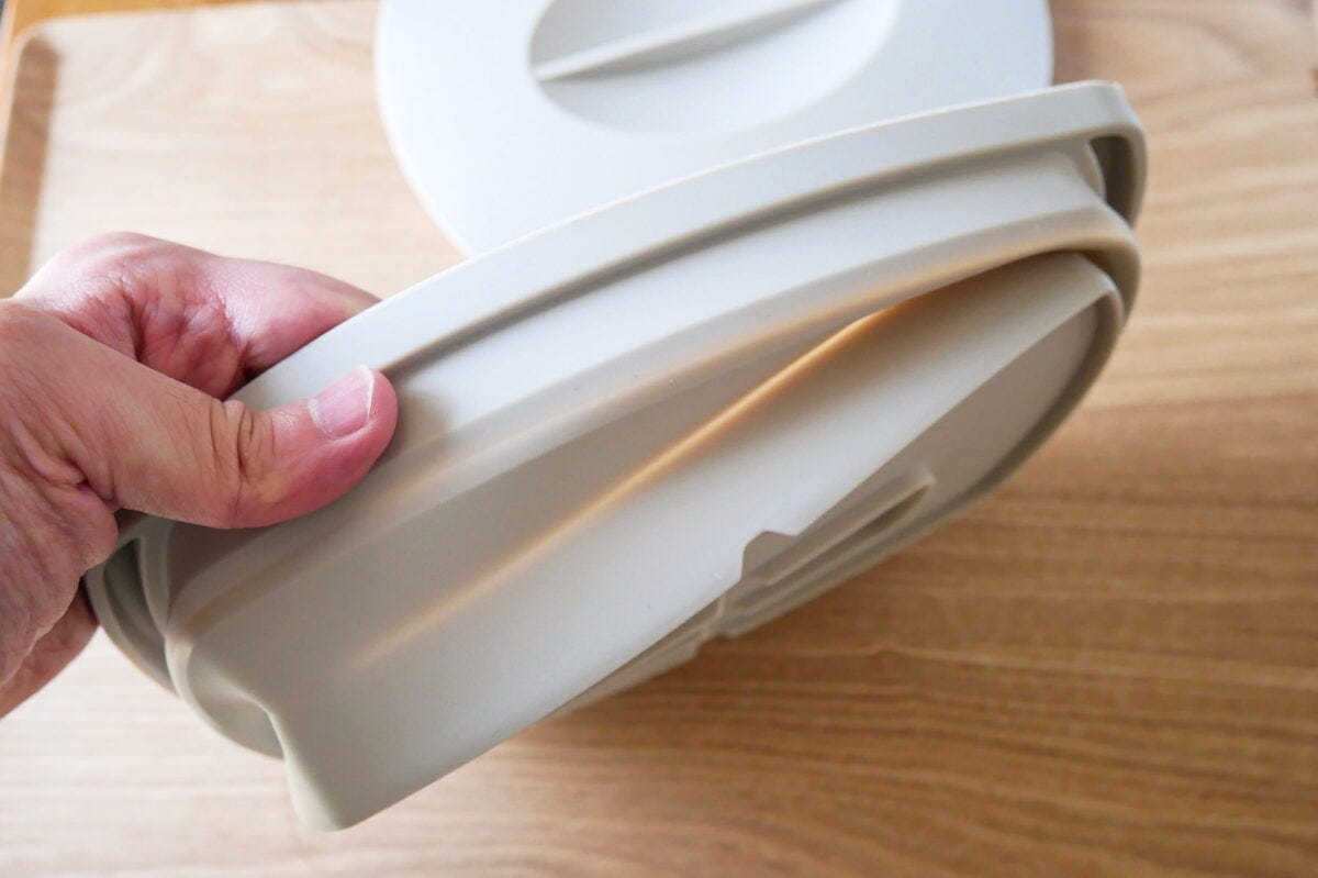 筆者は和平フレイズの「マジカリーノ シリコーンスチーマー」を使っています。蒸すことで栄養も溶けていかず、レンチンだけで手間もかからない時短グッズなので非常に気に入っています。折りたたんでコンパクトに収納でき、食洗機にも対応しています。