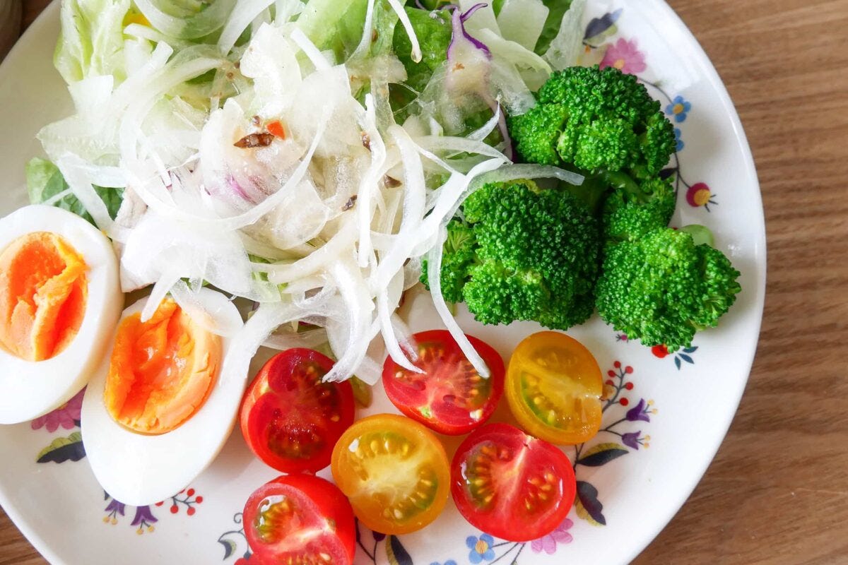 そこで、高橋さんの食事を一部再現してみました。各メニューの詳細は異なりますが、ポイントはブロッコリー、たまご、ヨーグルト、玉ねぎ、トマト、にんじんが入っていること。他にも、さつまいもや豆腐などが入っており、さらに野菜の量は写真よりも多いです。