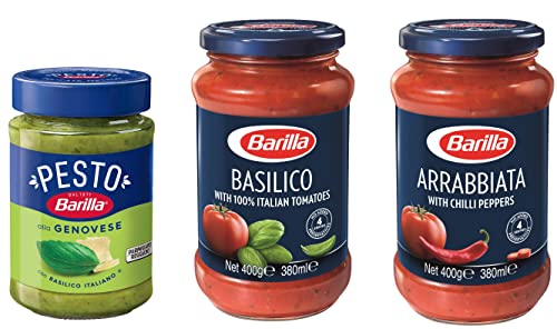 Barilla(バリラ) パスタソース 3種食べ比べセット (ジェノベーゼ1個、バジルトマト1個、アラビアータ1個) [正規輸入品] イタリア産