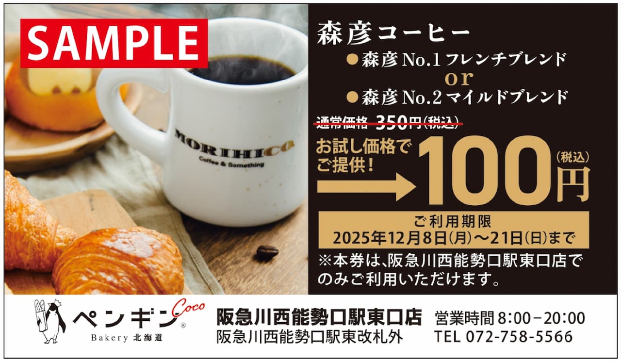 【兵庫】「ペンギンベーカリーCoco」初の駅ナカ店舗が川西能勢口に登場! コーヒーが100円で飲めるチケットのプレゼントも♡