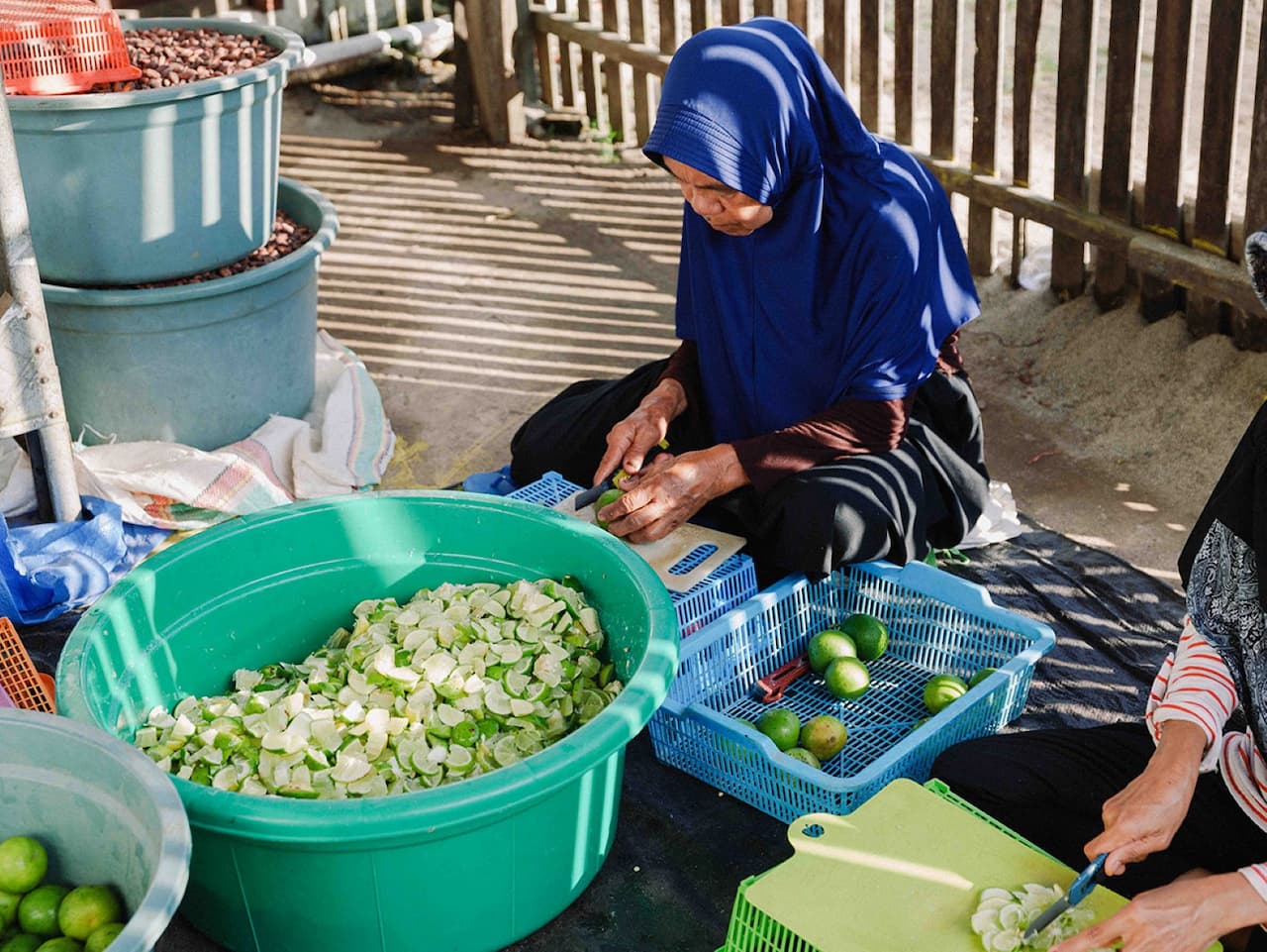 ライムを一つひとつカットする様子 今回「無印良品」に登場したのは、「dari K」独自の発酵技術を使用した“ライム発酵カカオ”を活かしたお菓子。カカオからのチョコレート作りにおいて“発酵”の工程でライムを入れることで、果汁や香料を足さずとも、カカオ自体から自然な柑橘の酸味とさわやかな風味が感じられるそうです。