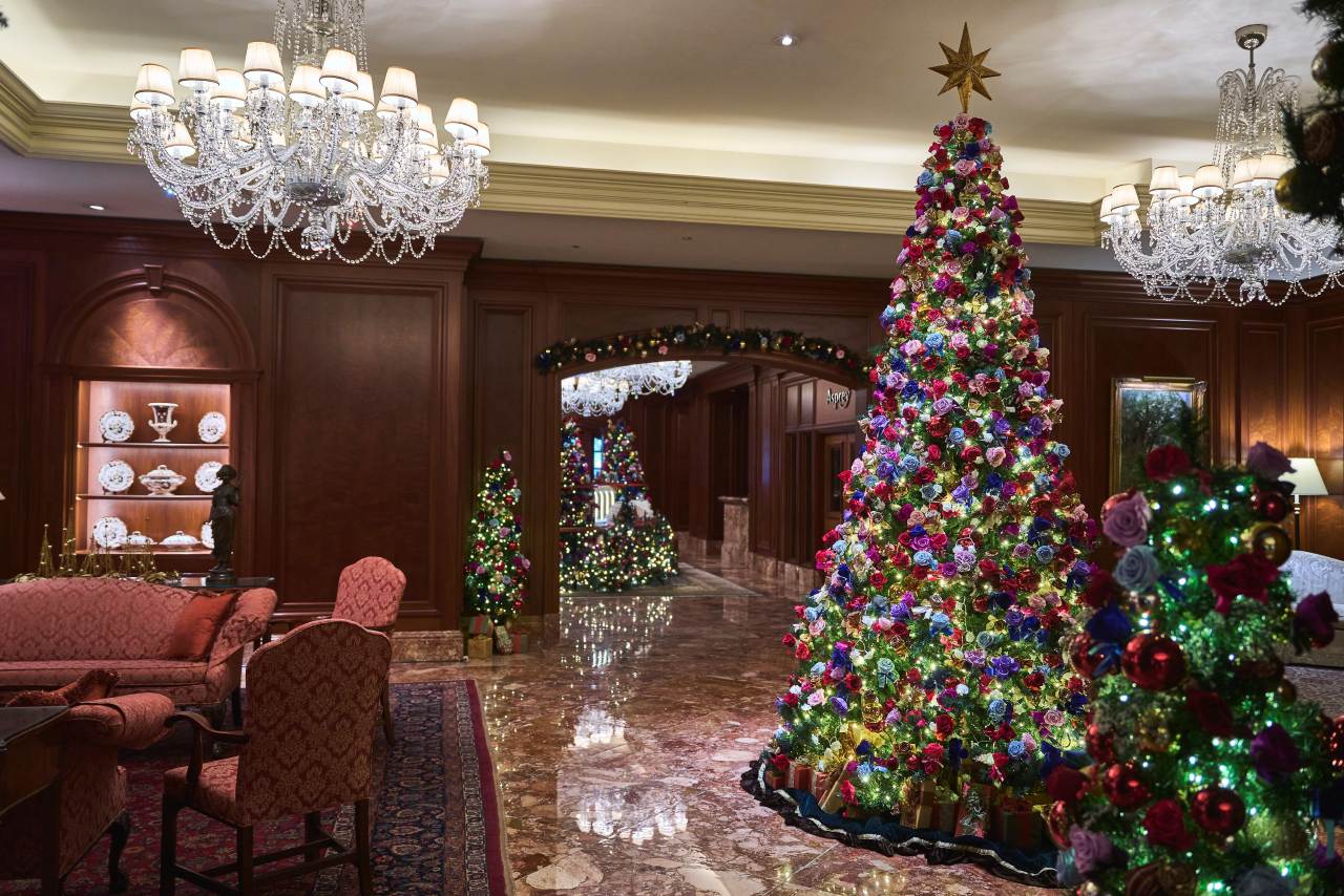 自然と背筋が伸びる、高級感あふれる「ザ・リッツ・カールトン大阪」。ロビーにある約1000本のバラで飾られたクリスマスツリーは、思わず記念撮影したくなる美しさです。このツリーの奥がアフタヌーンビュッフェの会場「スプレンディード」。スイーツもセイヴォリーも味の重複がないラインナップなので、どれを選ぶか悩んでしまいますが、記事内で紹介したメニューは必食です!