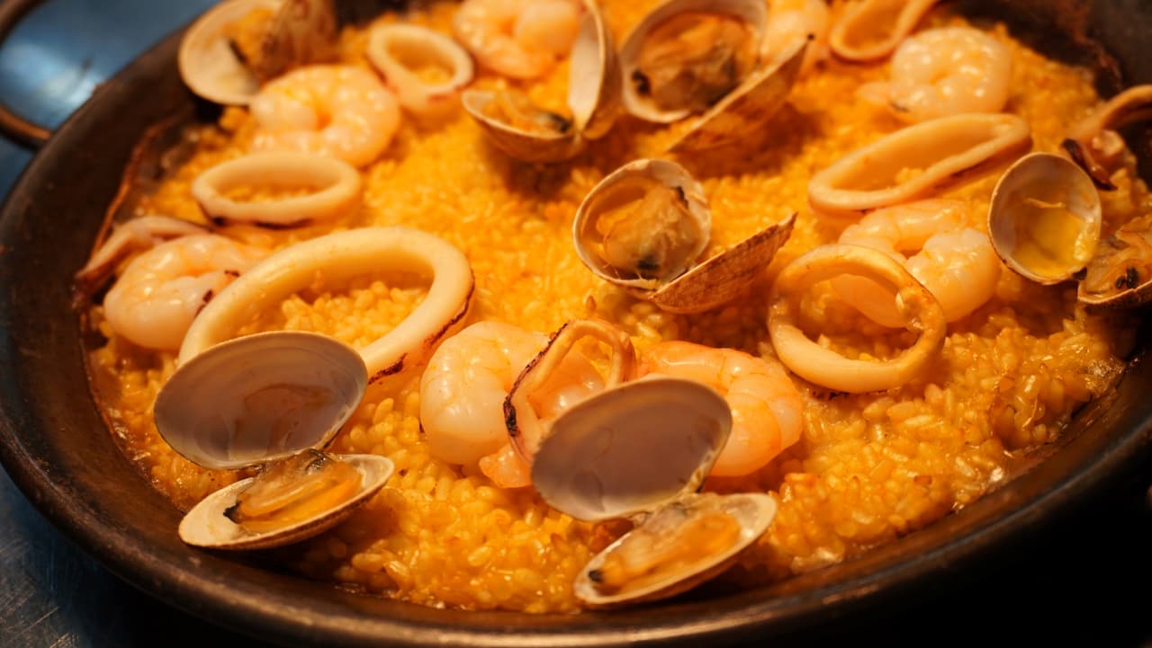 「フォーを使った牛すじ汁なし担々麺」 料理は、冬の夜に食べたい身体の芯から温まるメニューを用意。なかでも、「魚介のパエリア」や「イカスミのパエリア」などその日のおすすめが提供される「本日のパエリア」は注目です。