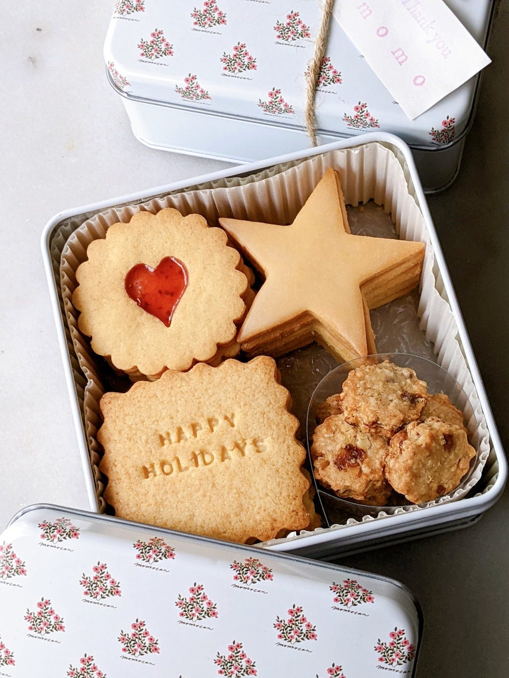 たっぷりのバターにほんのり塩味が効いている「もも缶」シグネチャーのバタークッキー、どこか懐かしいイチゴジャムを挟んだジャムサンド、さわやかな酸味の中にレモンピールの苦味とアイシングの甘さを感じるレモンクッキー、そして、ザクザクとした食感のレーズンを加えた優しい甘味のオートミールクッキーの4種類が入っています。