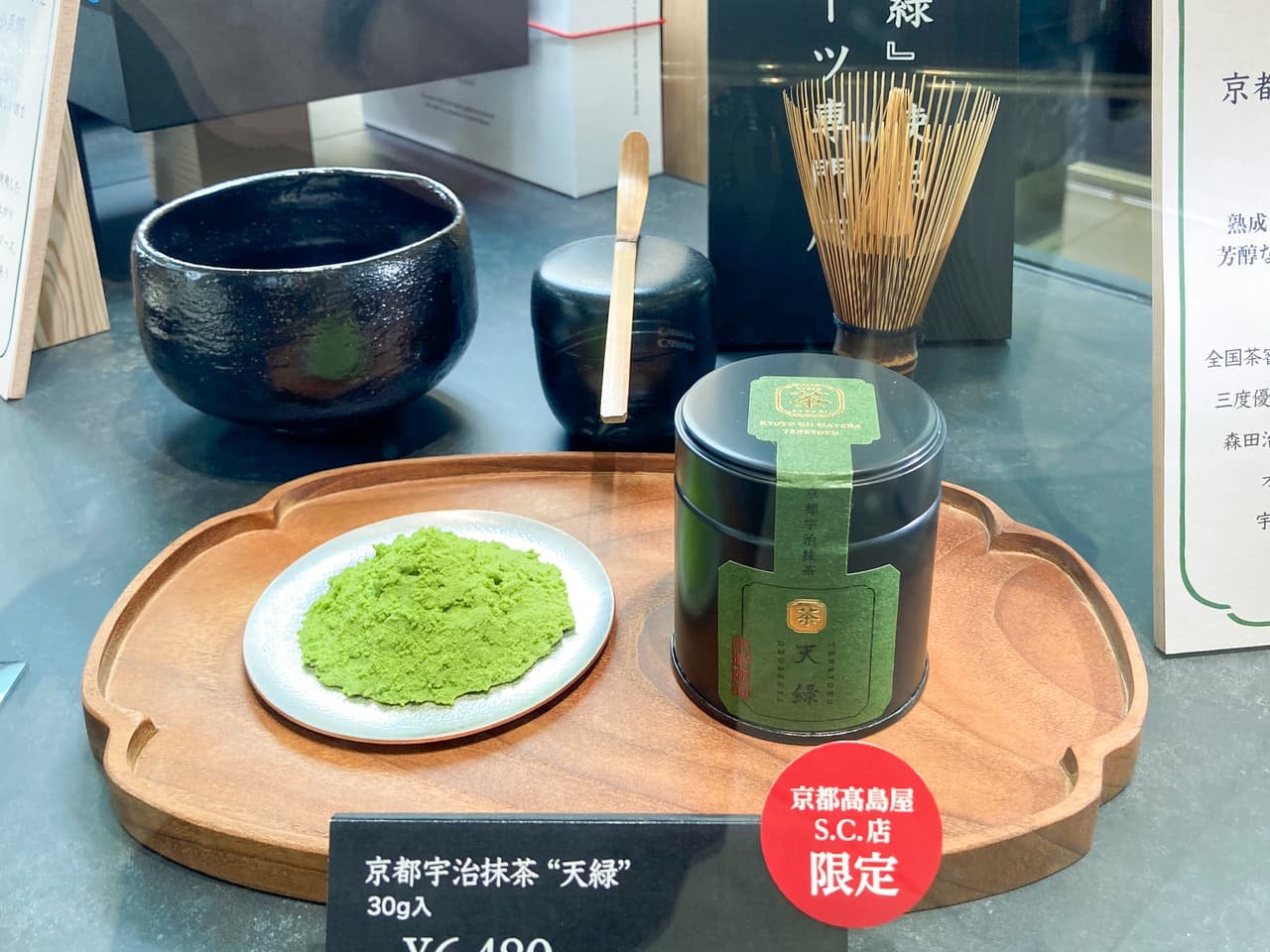 京都宇治抹茶「天緑」(30g)6,480円 「茶久利」の世界観を象徴するのが、熟成した一番茶のみを石臼で挽いたオリジナル宇治抹茶「天緑」。力強い香りと深いコクが特徴で、京都高島屋限定で販売。抹茶好きへのギフトにもおすすめです。