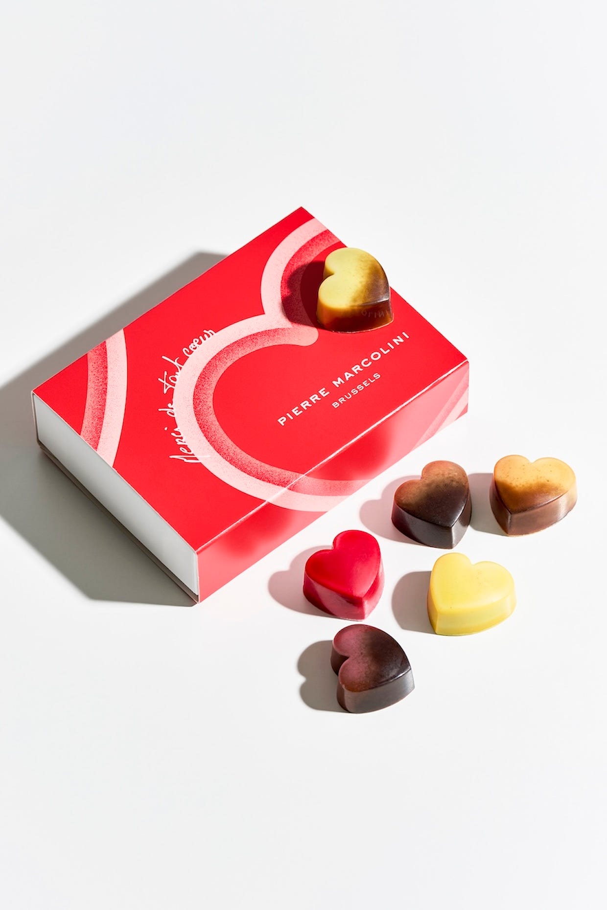ピエール マルコリーニ定番のハート型「クール ココロ シリーズ」が、「多様な愛の形」を表現したアシンメトリーのハート型に。ブランド日本上陸25周年を迎える2026年の、バレンタインのテーマは“Merci de tout Cœur (心からありがとう)”。定番2種に加え、4種の新フレーバーが登場。ユズやアズキなど和の食材やヨーロッパ定番のスミレが使用され、和洋の味を楽しめる。