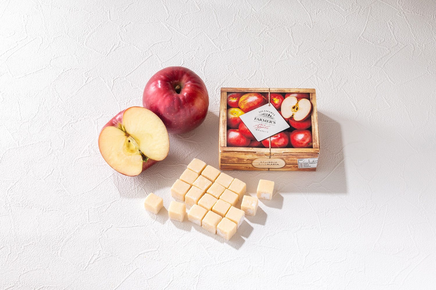 国産の紅玉りんごを使った、甘酸っぱい香りが広がる生チョコレート。紅玉りんごの爽やかな酸味と、ホワイトチョコレートのまろやかな甘さが重なり合い、フルーティーな余韻と優しい味わいが口いっぱいに広がる一品。冬のティータイムにぴったりの上品なスイーツを楽しんで。