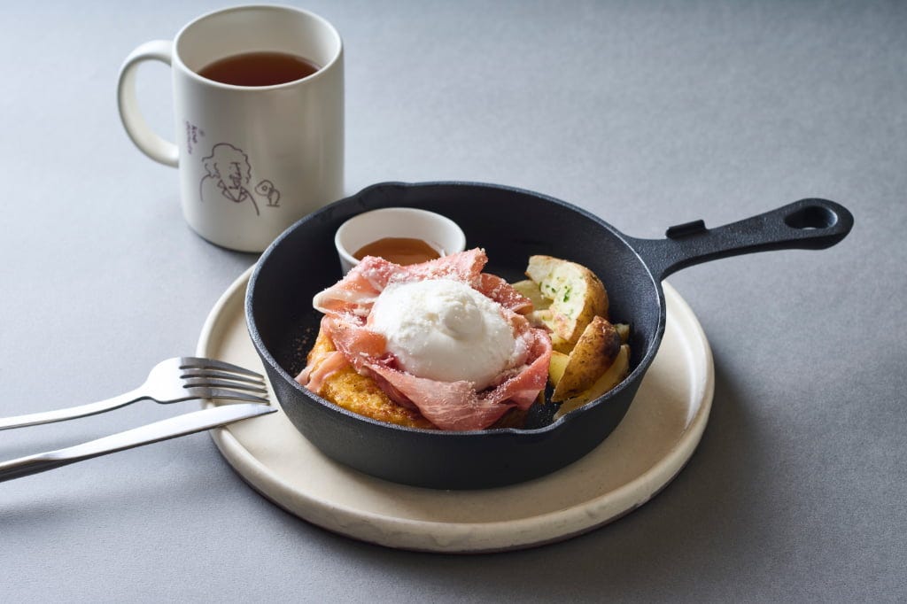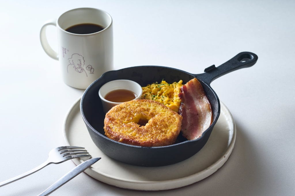 「フレンチトースト ランチプレート」(ドリンク付き/1,980円) さらに「koe donuts kyoto」店舗では、アツアツの自家製フレンチトーストに京都・美山の平飼い卵のスクランブルエッグ、風味豊かな京都ポークのベーコンを合わせた「フレンチトースト モーニングプレート」と、同じ自家製フレンチトーストに生ハム、ブッラータチーズを丸ごとトッピングした「フレンチトースト ランチプレート」を展開。2026年1月5日(月)から冬季限定で注文できます。