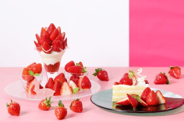シェフの技が光るいちごのスイーツたちは、ながめているだけでもうっとり。お気に入りのホテルで、美しくおいしい時間を過ごしてくださいね。