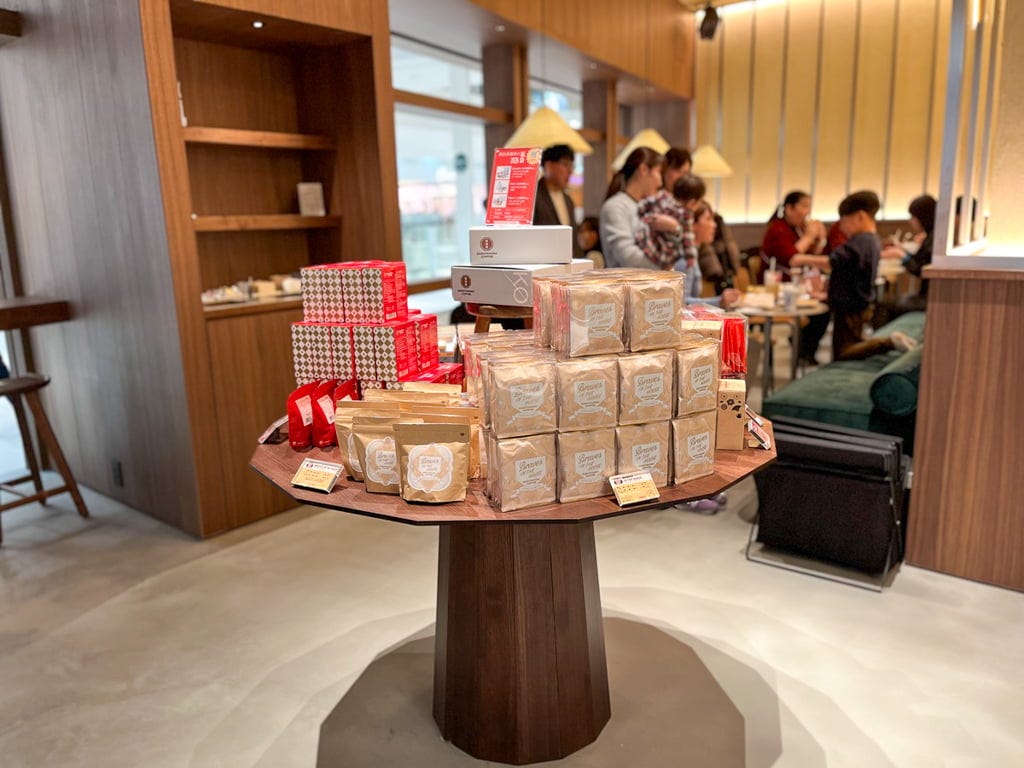 「ブレーブスインザハウス」豆(100g/1,100円)、ドリップバッグ(5個入/1,100円)※数量限定 阪急西宮ガーデンズ店でしか味わえない限定ブレンド「ブレーブスインザハウス」(Short 480円~)も登場。パナマやエチオピア産の豆を使用し、ドライフルーツやキャラメルを思わせるやさしい甘さが感じられます。余韻もさわやかな一杯は、自宅でも楽しめる豆や手軽なドリップタイプも並んでいます。