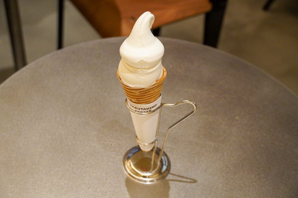 なめらかな口どけが印象的な「和三盆みるくソフト」は、ソフトクリームの上品な甘さが和三盆ならでは。口中ですっと切れるさっぱりしたあと味なので、コーヒーのあとに食べるのもおすすめです。
