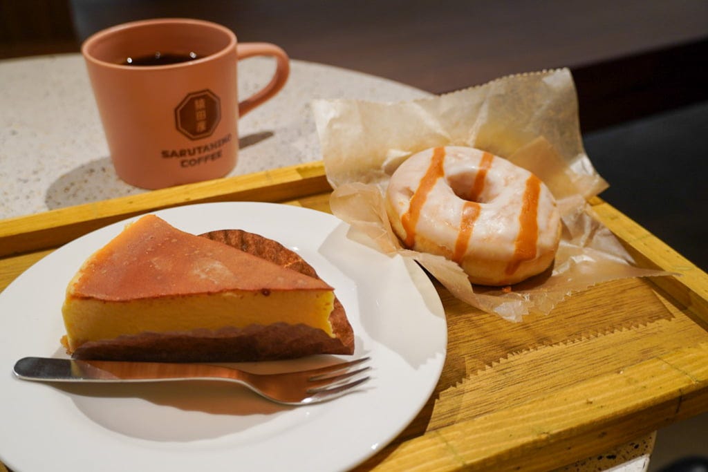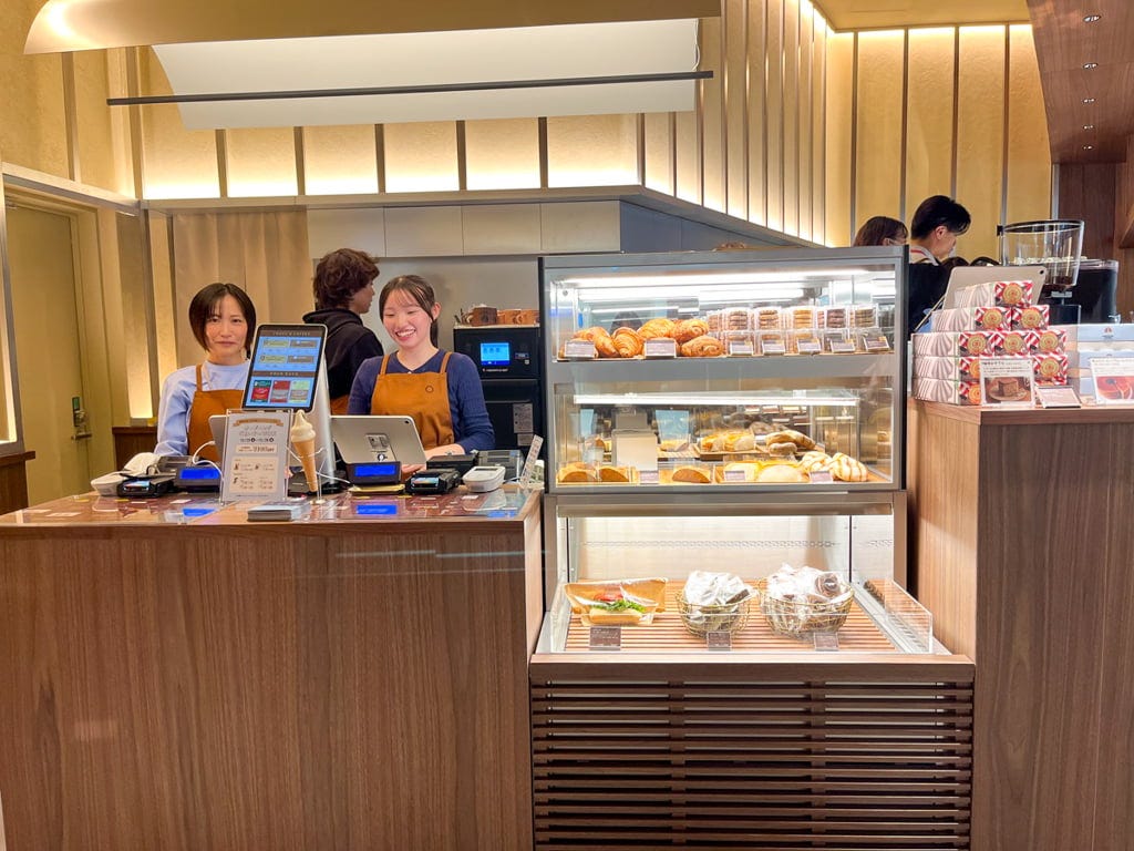 オーダーカウンター横のショーケースにはパンやスイーツが並んでいます。「猿田彦珈琲」で焙煎されたブレンド豆を使って、長崎の老舗が作った「珈琲かすてら」(1,374円)も販売中。