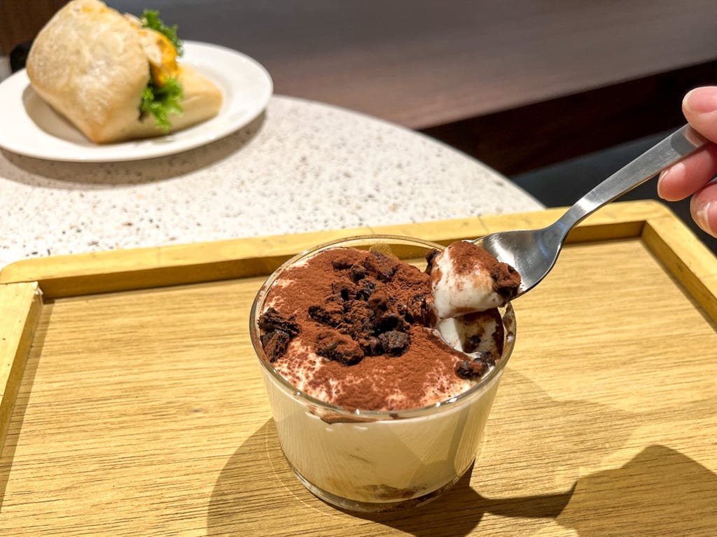 「おとなのティラミス」は、その名のとおり、コーヒーの香りと味をしっかり感じられる、大人向けのスイーツ。ナチュラルなきび砂糖のシロップが、フルーティなオリジナルエスプレッソの味を引き立ててコーヒー好きにはたまりません。