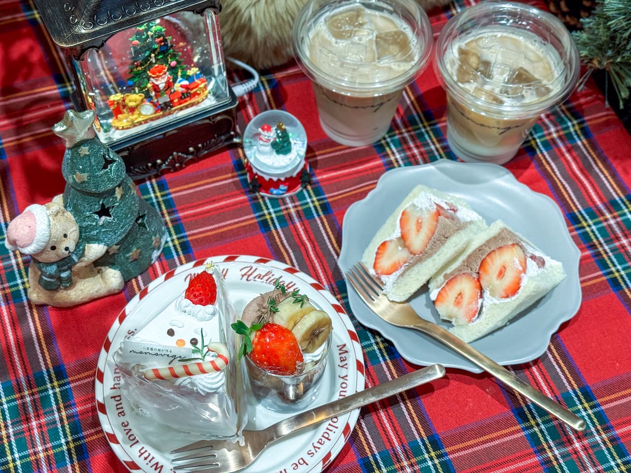 (左から)「サンタショートケーキ」、「ミニパフェ(チョコバナナ)」、「いちごチョコサンド」