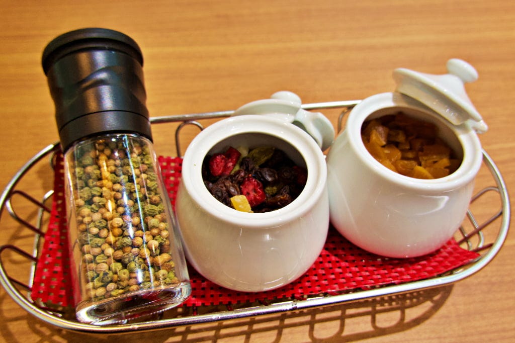 ※平日ランチ限定メニューを注文の場合は、福神漬のみの提供 添えられる福神漬やドライフルーツ、スパイスで味の変化を楽しめるのもポイント。「ビーフカレー」にはドライフルーツを加えると、素朴な甘さと独特の食感が、「ビーフカレー」のおいしさをさらにアップさせてくれますよ。