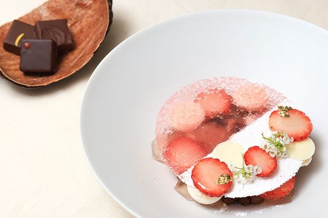 ラ バーズ ドゥ シェ リュイ「いちごとカカオの、かくれんぼ」(3,500円) 2026年1月20日(火)・23日(金)・24日(土)・26日(月)・28日(水)・2月1日(日)限定で、ショコラを使った特別なデセールを日替わりで楽しめます。