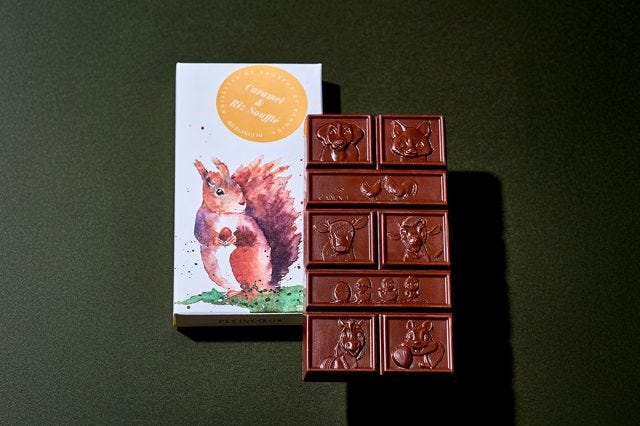 プラン クール「タブレット キャラメル リズ スフレ」(5,076円)<サロン・デュ・ショコラ限定> 「セバスチャン・ブイエ」や「エリック・カイザー」などで修業し、2024年に自身のブランドを立ち上げたベルトラン・バレー氏による「ベルトラン・バレー」と、ノルマンディー出身のマキシム・フレデリック氏によるブランド「プラン クール」が、京都に初お目見えします。