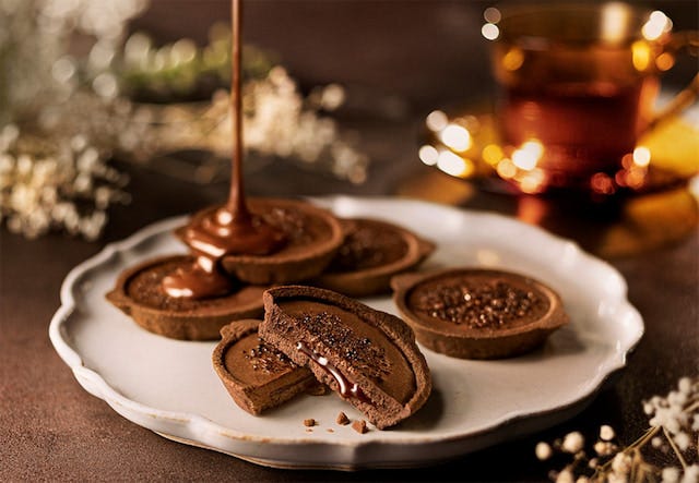 「ブリュレショコラタルト」(5個入り/1,350円) ※一人2箱まで 今回登場したのは、大人気の「ブリュレクリームタルト」がバレンタインシーズン限定で“トリプルショコラ味”になった「ブリュレショコラタルト」。