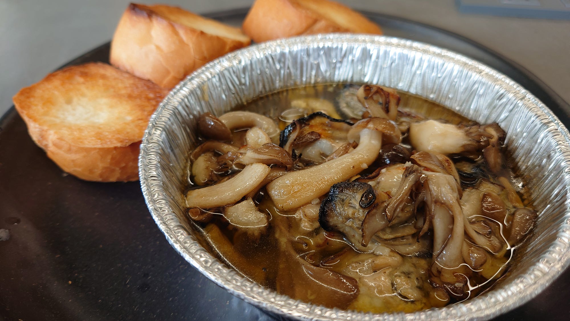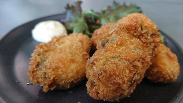 写真左から:「牡蠣と茸のアヒージョ」(900円)、「牡蠣フライ」(650円) さらに、牡蠣ご飯やスンドゥブ、アヒージョ、牡蠣フライなど、牡蠣のおいしさをさまざまな形で味わえるメニューも充実しています。気分や一緒に行くメンバーに合わせて、いろいろな楽しみ方ができそうです。