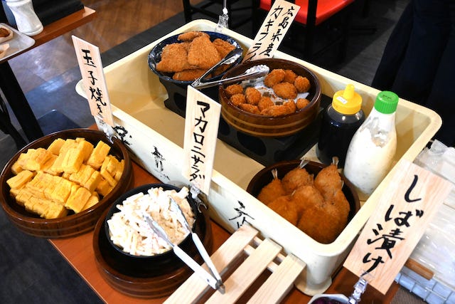 関西初!「漁港食堂」がなんばにオープン 刺身も揚げ物も食べ放題!気になる料金は? オープン初日の店内をレポ 刺身だけじゃない!揚げ物やデザートも充実 夜は「酒場まじめや」に。コラボ店ならではの楽しみ方も関西初!「漁港食堂」がなんばにオープン