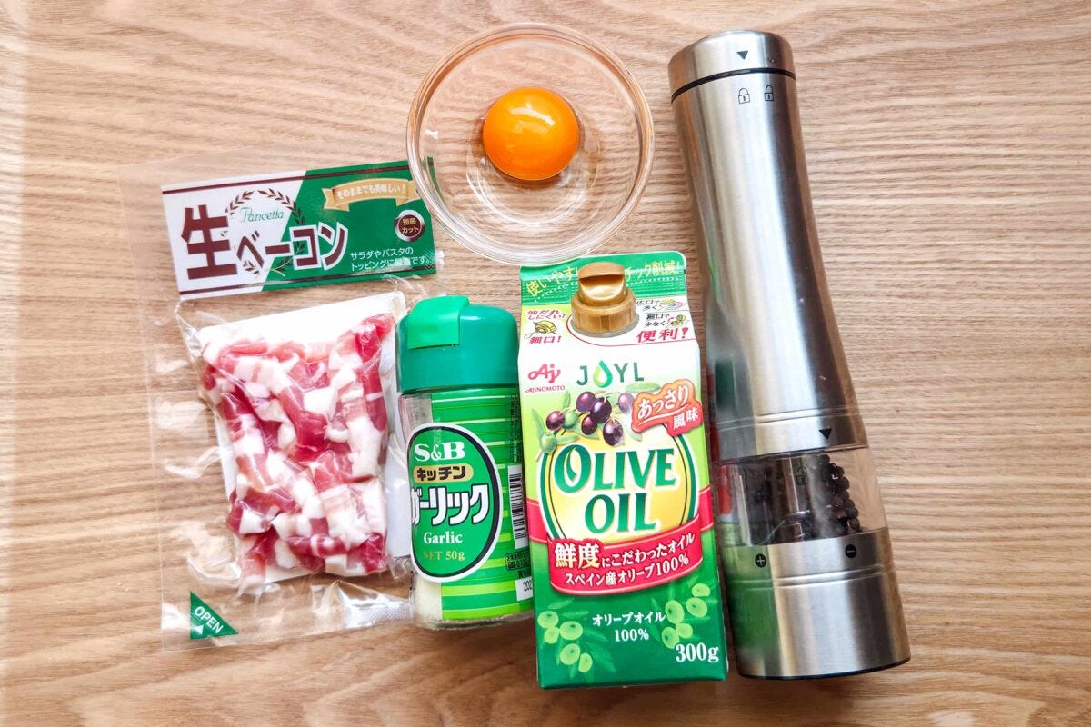 そんな「生ベーコン」を、こゆきさんが紹介した食べ方を実践してみます。材料はすべて適量です。