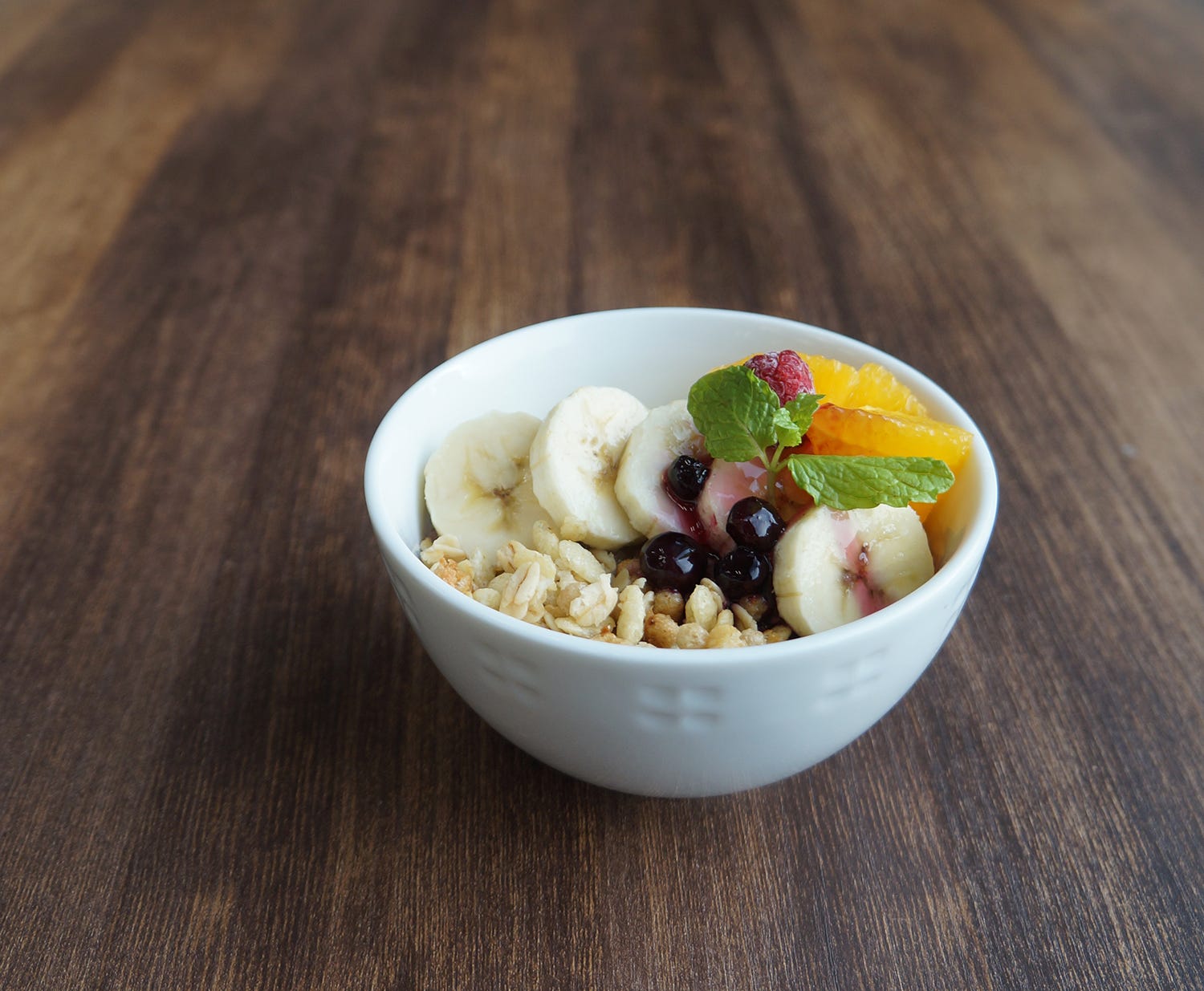 とろりとなめらかなアサイーとヨーグルトを合わせ、バナナやオレンジ、ラズベリーなどのフルーツ、グラノーラをトッピング。やさしい甘さとフルーツの酸味、食感のアクセントが調和した、満足感のある仕立てに仕上げた。朝の「軽めの朝ごはん」としてはもちろん、ランチやディナーに「メインにプラス1品」として楽しんでみて。