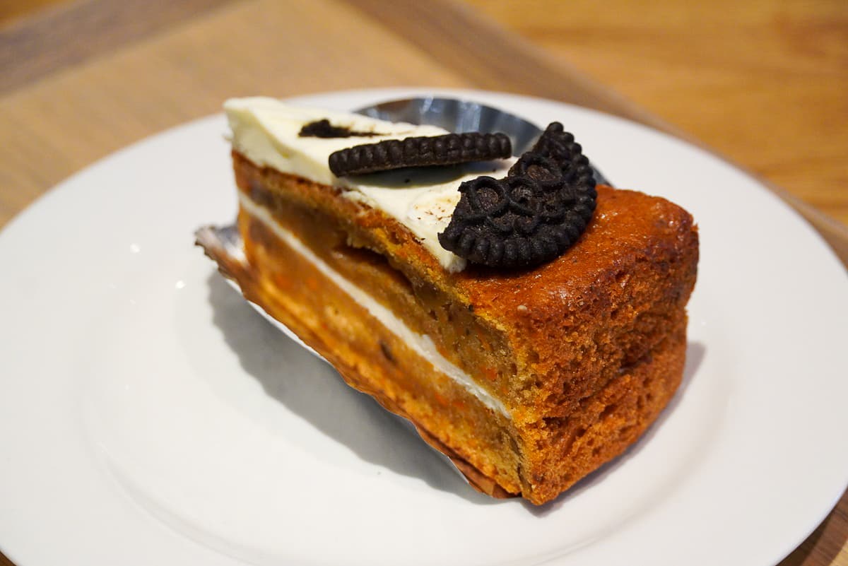 「キャロットケーキ」は、夏みかんをブレンドしたマーマレードをキャロット生地に練り込み、クルミやリンゴも加えた、食感豊かな一品。しっとりしながらも重すぎず、後味はすっきり。さっぱりとした甘さで、コーヒーのおともにぴったりです。ちょこんとのったオレオもアクセントになっています。