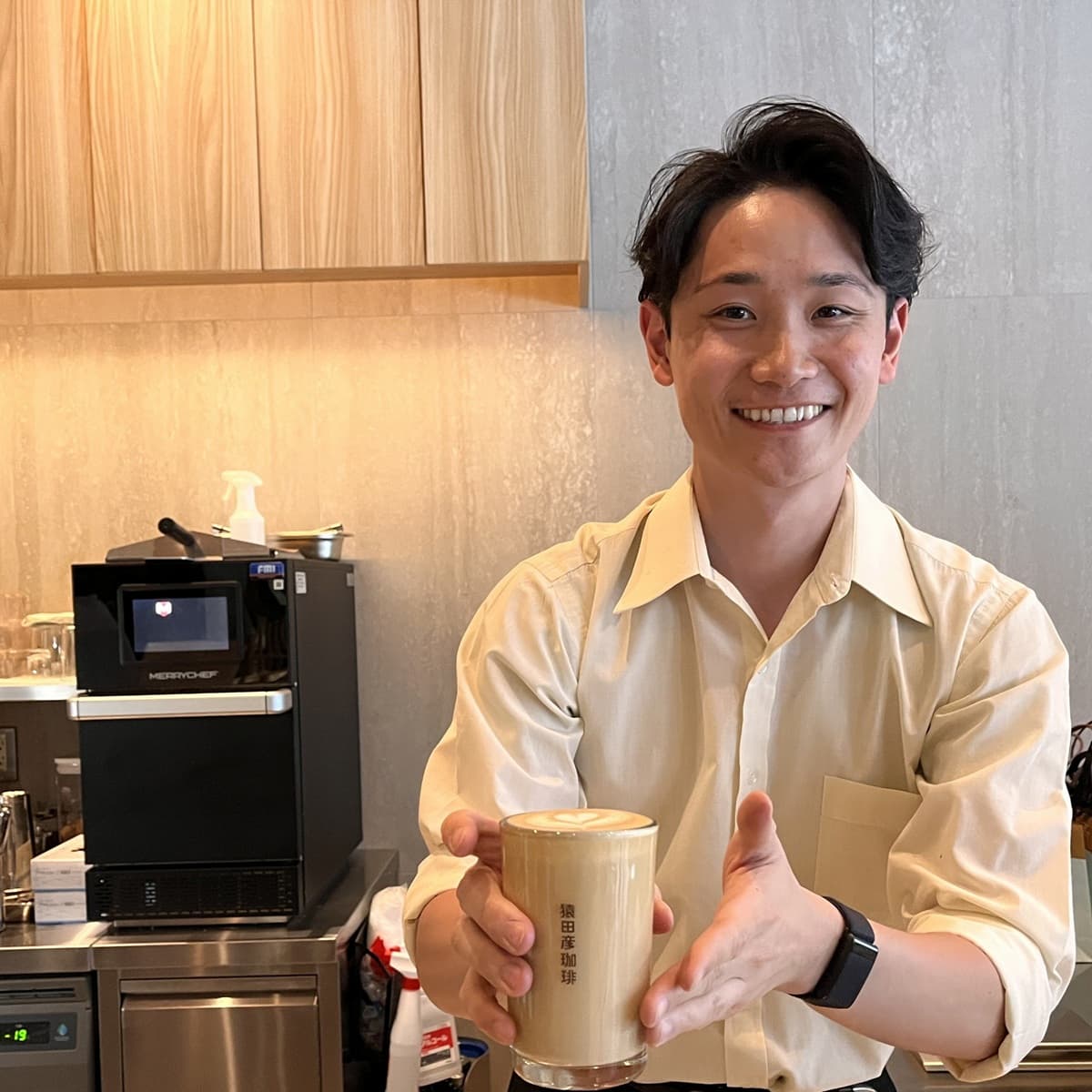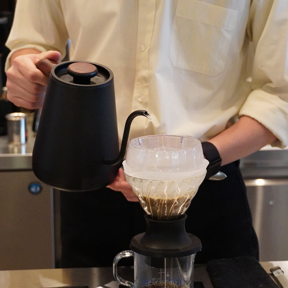 訪れたこの日は、たまたま有名なバリスタ、伊藤大貴さんが店頭に。「ワールド バリスタ チャンピオンシップ2025」で世界5位に輝いたバリスタが、目の前でコーヒーを淹れてくれるという、思いがけないタイミングでした。通常は京都祗園店におられないので、ラッキーでした。