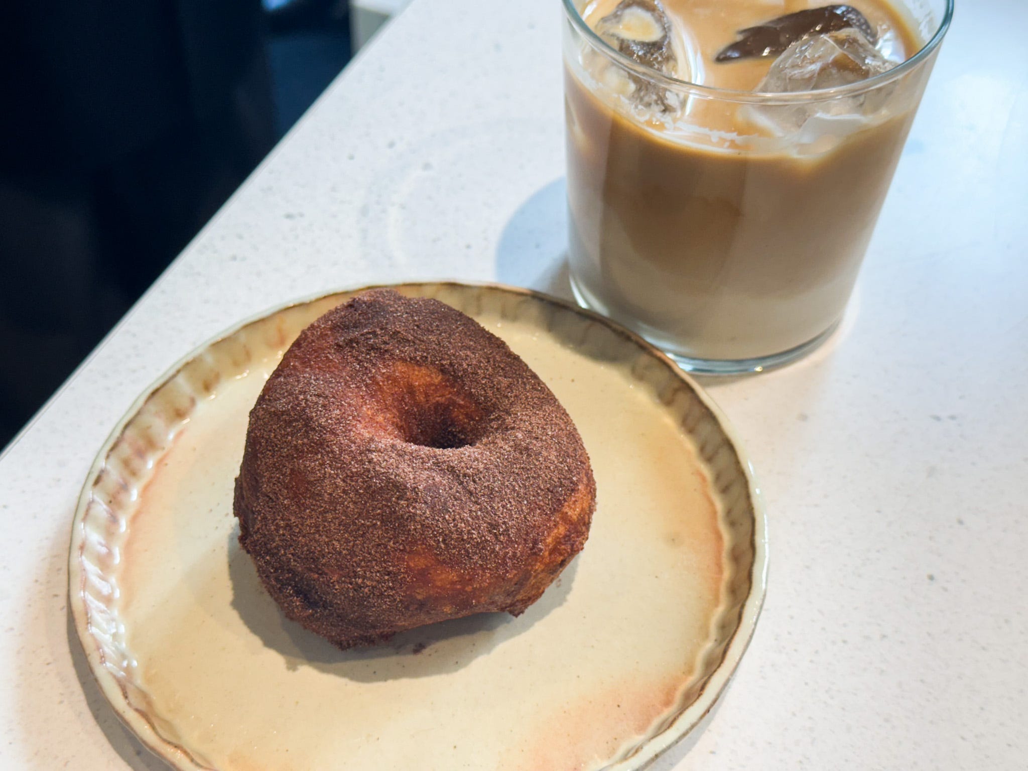 以前から気になっていたものの、なかなか食べる機会がなく、実はこの日が人生初マラサダ。ドーナツのようなふんわりした食感を思い描いていましたが、ひと口食べると、外はサクッと、中はふんわりもちもちの揚げパンのような食感で、気づけばあっという間に完食。ラテとの相性も抜群です。