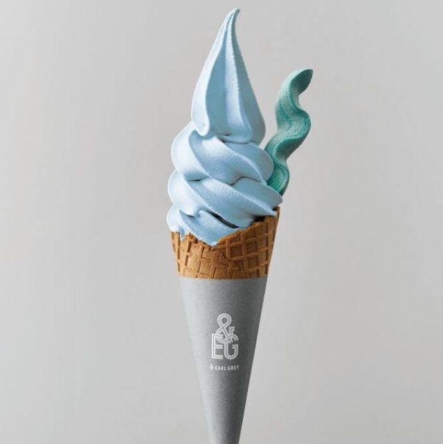 天然ベルガモットが香る「アールグレイリッチミルク」は、濃厚なのにさっぱりとした味わいで、まさに “食べるミルクティー” といった印象。「バタフライピーアールグレイ」は、神秘のお茶といわれるハーブティー「バタフライピー」で作った青いソフトクリーム。鮮やかなブルーは天然のアントシアニンの色で、生乳から作った濃厚なミルク味と爽やかな香りを楽しめます。