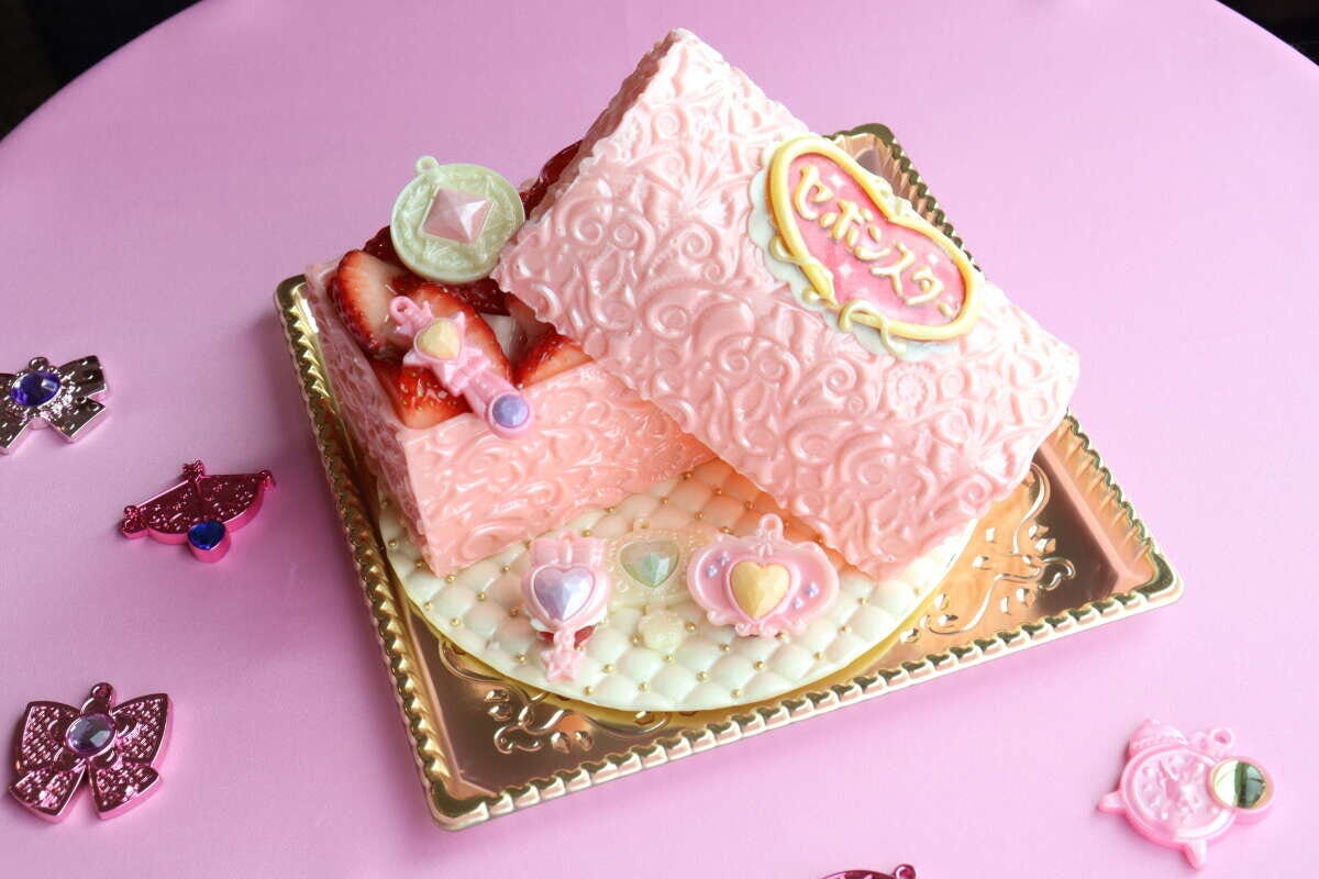 精巧なピンクのチョコレート細工で作られた宝石箱の中には、いちごのショートケーキがぎっしり 。本物そっくりのセボンスターのペンダント型チョコが飾られ、食べるのがもったいない美しさです 。