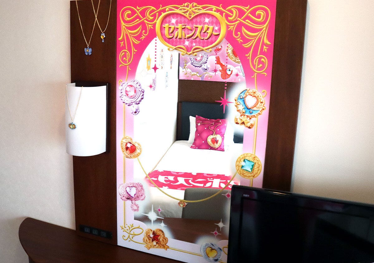 お部屋に入った瞬間、目に飛び込んでくるのは鮮やかなピンクの世界観!思わず「わぁ〜、可愛い♡」と声を上げてしまうほど、空間全体がセボンスターのキラキラ感で満たされています。