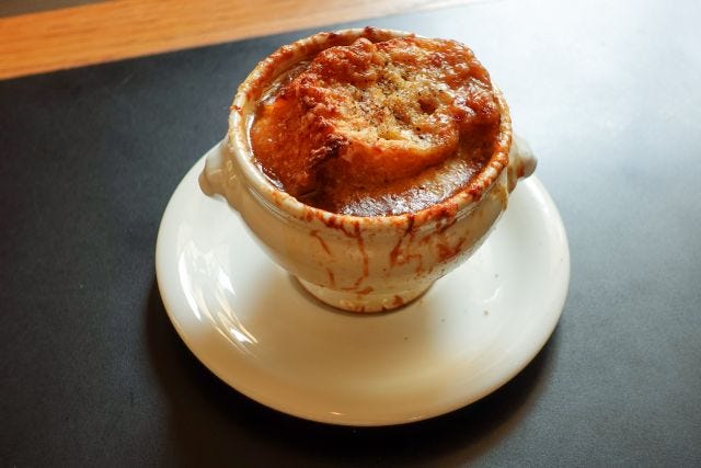 「オニオングラタンスープ」1,200円 このほか「黒毛和牛サーロインのローストビーフ」や「オニオングラタンスープ」といったアラカルトが多数お目見えし、お酒と一緒に料理を楽しむなど好みのスタイルで過ごせます。